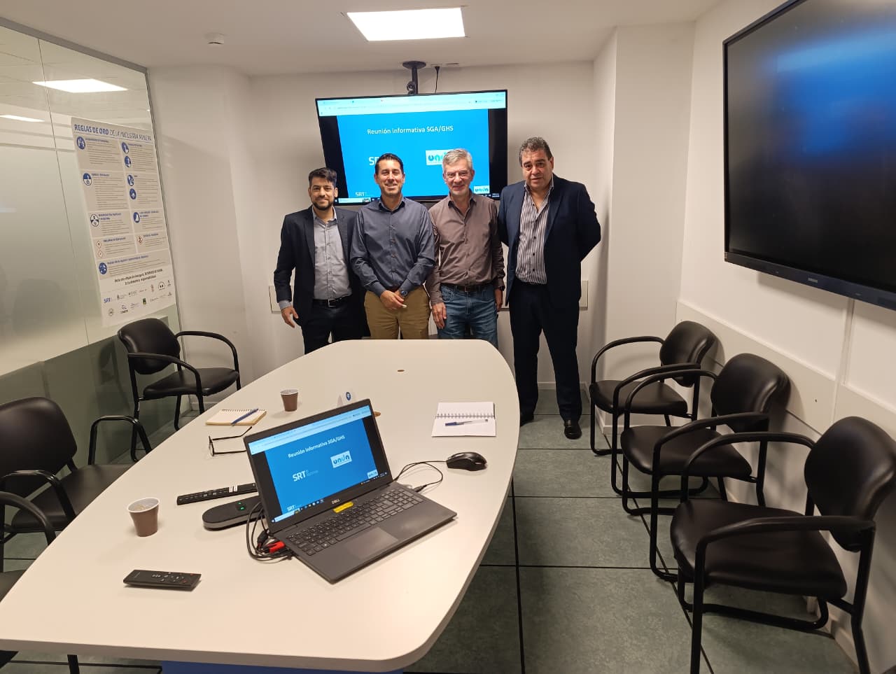 En el primer encuentro, el secretario de UADA, Enrique Torres, y el coordinador institucional, Facundo de la Fuente, fueron recibidos por el Licenciado Alejandro Machado, titular de la unidad Preventox Laboral de la SRT.